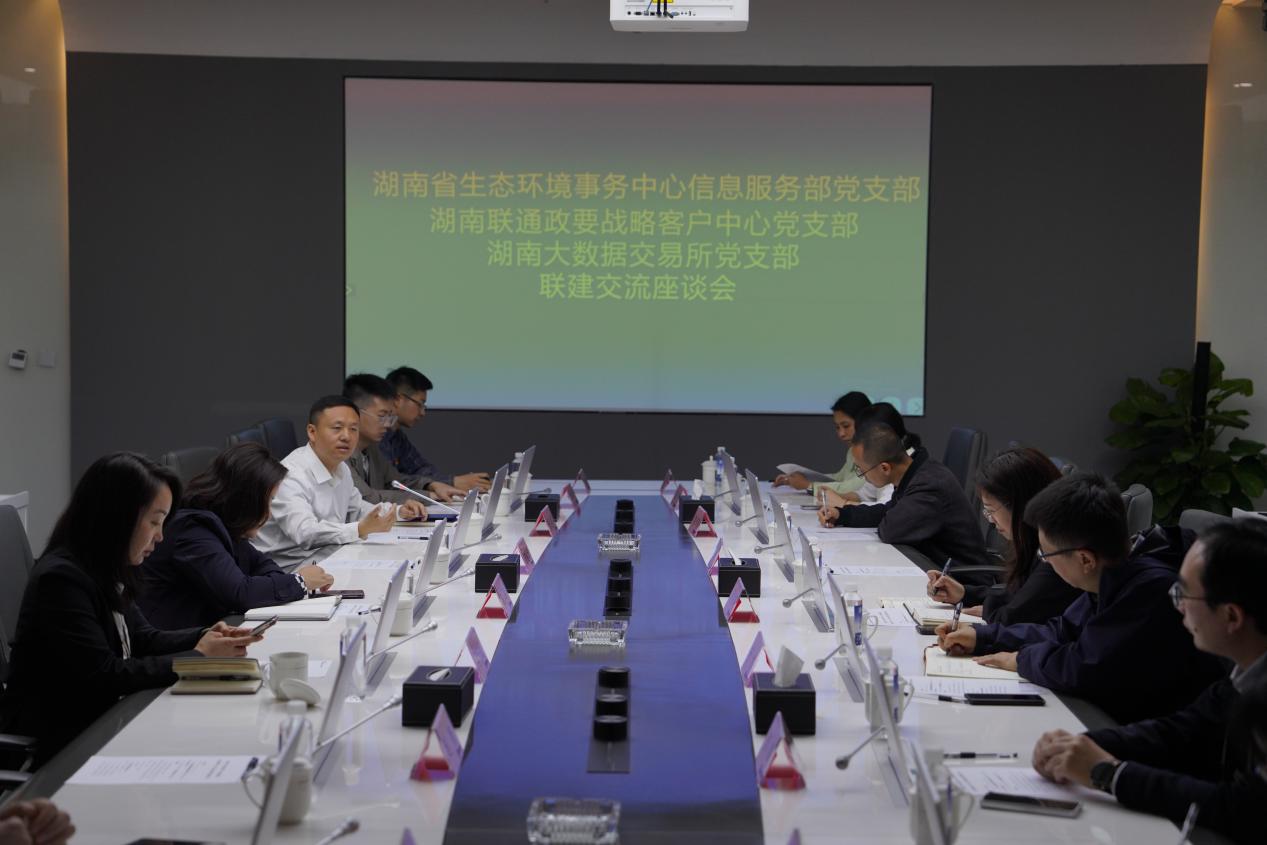 活動中,湖南大數據交易所率先介紹了近年來數據交易取得的顯著成果,分享了多個數據交易領域典型成功案例及經驗做法。隨后,湖南聯通數據領域專家交流分享了相關的寶貴經驗并表示可以為生態環境數據相關工作提供全方位技術支撐,助力生態環境數據處理、分析與應用。信息服務部黨支部書記蘇維結合支部品牌“E路心向黨 E路慧三湘”介紹了支部黨建引領業務的情況,表示三方各有所長,可以優勢互補,加強交流合作。