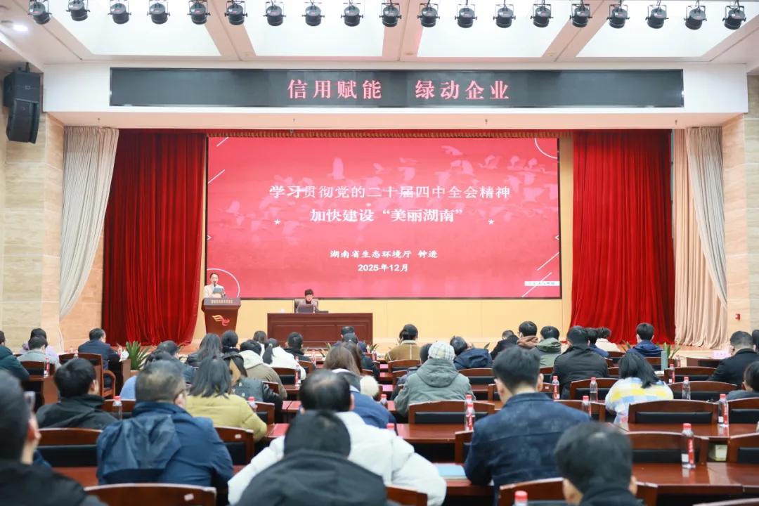 如果說互動體驗點燃了參與熱情,那么扎實的賦能培訓則為企業綠色發展注入了“硬核動能”,成為本次活動的“重頭戲”。省生態環境廳二級巡視員鐘進圍繞“學習貫徹黨的二十屆四中全會精神,加快建設美麗湖南”開展主題宣講,引導企業深刻領會生態環境保護的極端重要性、艱巨復雜性和現實緊迫性,將生態環境保護擺在極其重要的突出位置,與企業長期發展和健康發展緊密聯系起來。