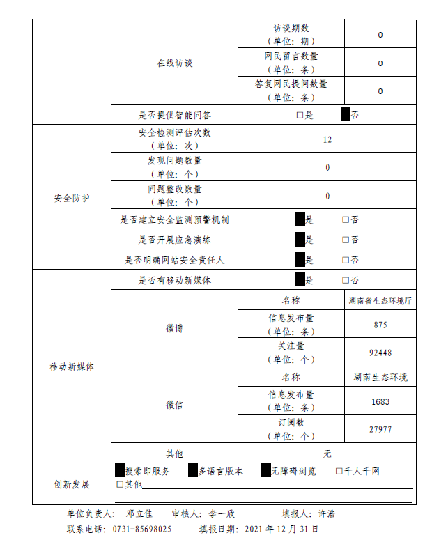 湖南省生態環境廳政府網站工作年度報表(2021年度)