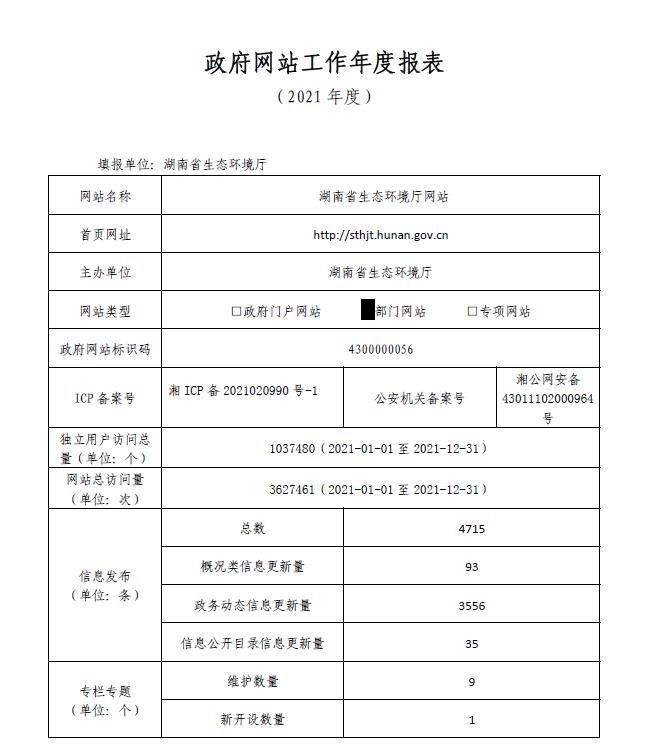 • 名稱: 湖南省生態環境廳政府網站工作年度報表(2021年度)